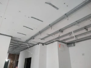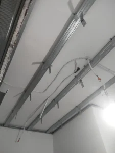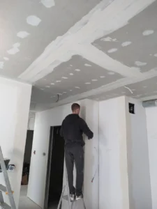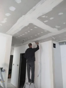 Wykonaliśmy podwieszane sufity w niemal całym mieszkaniu oraz zamontowaliśmy oświetlenie LED.