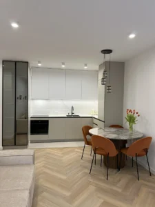 Całkowity remont i wykończenie mieszkania 58m w stanie deweloperskim w miejscowości Kowale obejmował m.in.: